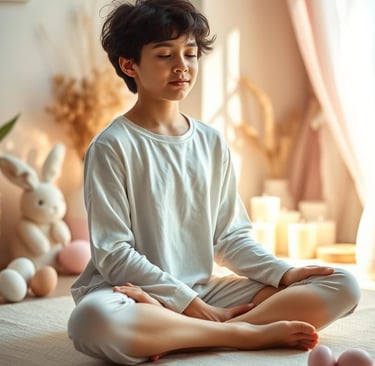 A imagem acima traduz esse sentimento com delicadeza: uma criança sentada com serenidade, rodeada por um ambiente suave e acolhedor. Nada de distrações, apenas o silêncio, a respiração e o agora. Esse é o verdadeiro ponto de partida para uma meditação eficaz: criar um pequeno refúgio, onde o corpo relaxa e a mente pode descansar.